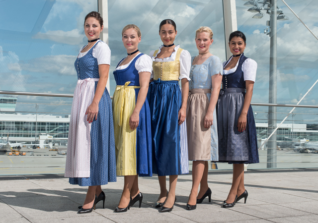 Het kostuum werd dit jaar ontworpen door kostuumontwerper Angermaier. De dirndl van de vrouwelijke flight attendants is donkerblauw met zilveren details en de mannelijke flight attendants dragen lederhosen met daarop een donkerblauwe vest. Daarnaast zullen passenger servicemedewerkers van Lufthansa op München Airport ook te zien zijn in de klassieke klederdracht.